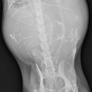 經過檢查後診斷為難產,原因是母狗產道狹窄,導致胎兒頭顱無法通過。主人當機立斷請獸醫師進行剖腹產,搶救胎兒的生命。