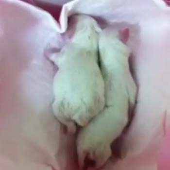手術順利搶救出一對瑪爾濟斯姊妹,醫務人員正在用吹風機保溫。